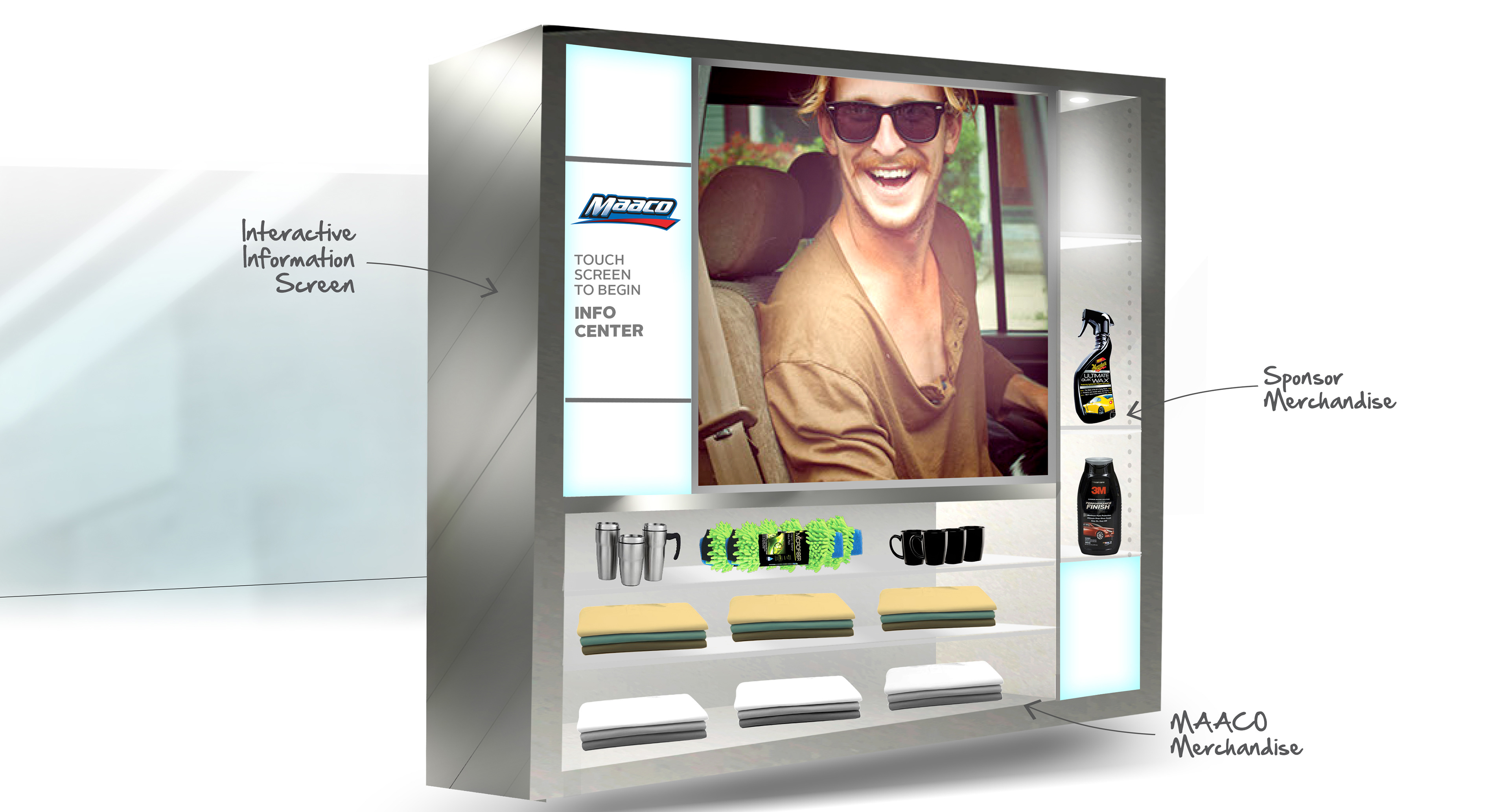 A modernistic reimagined look at the Maaco Auto Painting and Collision Store. Goals were to make it more inviting to the consumer, less antiquated and more interaction within the environment (products, color wall etc.)